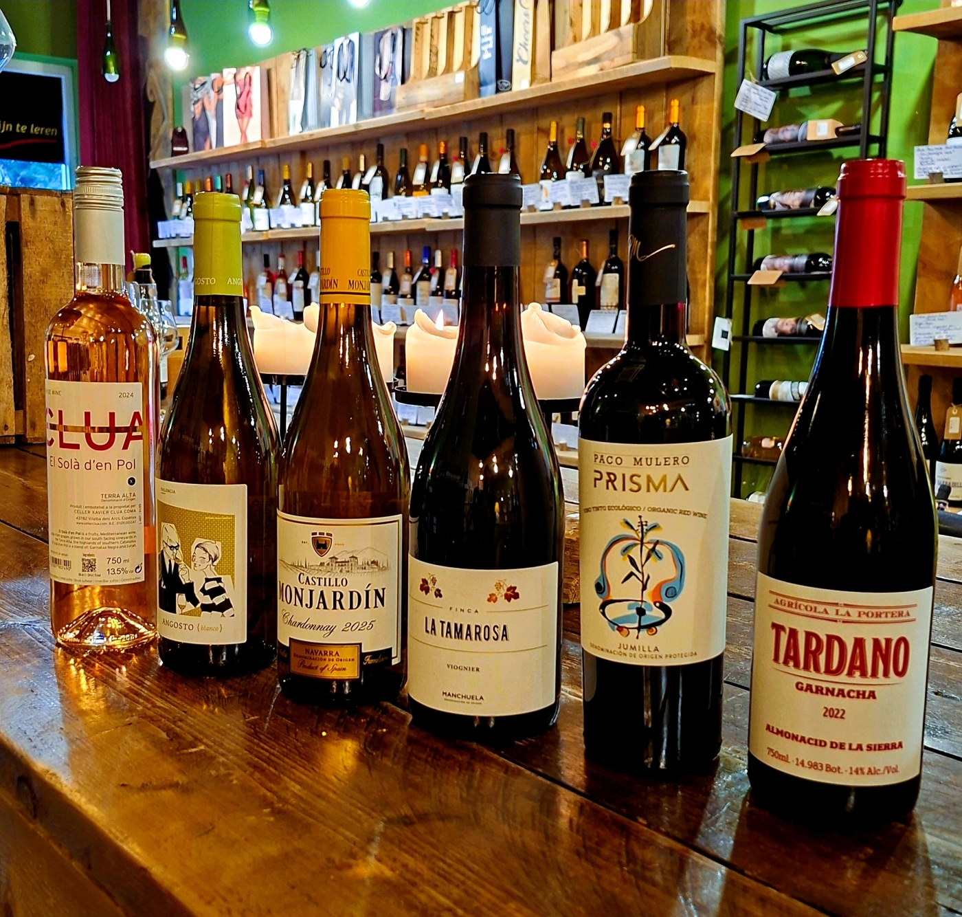 - Rood: De biologische Prisma Organico en de soepele Tardano Garnacha.
